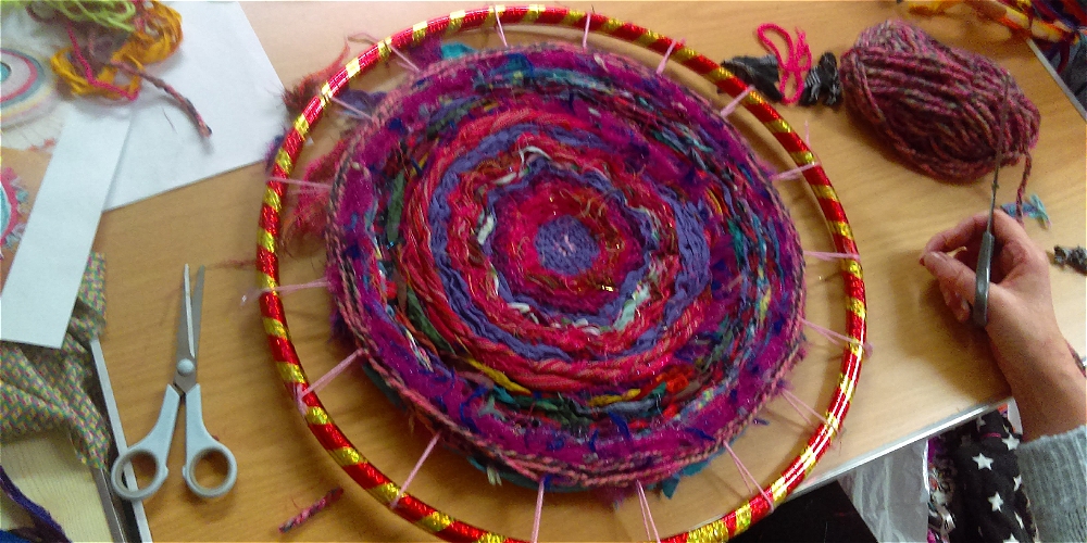 Turn clothes with memories into a beautiful round rug using simple weaving techniques and a hula hoop loom.