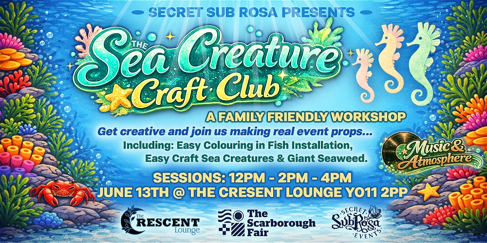 Join us for another Secret Sub Rosa family-friendly workshop where we jump into the depths of the ocean to create a cluster of creatures from the deep! Get creative with a bunch of sea themed activities and our usual chilled immersive environment.