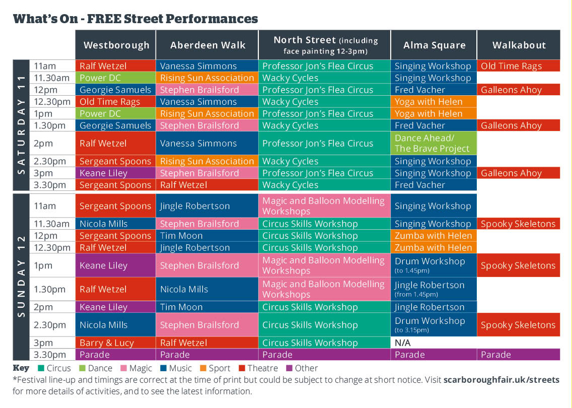 Join us for a two-day festival of outdoor events and performances. This inclusive community event takes place in Scarborough Town Centre over the weekend of Saturday 11 to Sunday 12 October (11am – 4pm) and will include a variety of free performances and activities. We want to inspire, celebrate and showcase local creativity and there will be something for everyone, so head to the Westborough, Aberdeen Walk, North Street and Alma Square to get involved!