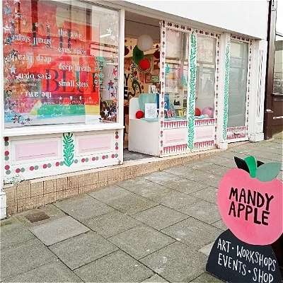 "Mandy Apple is an art gallery, independent shop and studios run by Mandy Apple Collective. Mandy Apple Collective is a Scarborough Based art collective with the goal of bringing more public art, skill sharing and weirdness to the Yorkshire Coast."